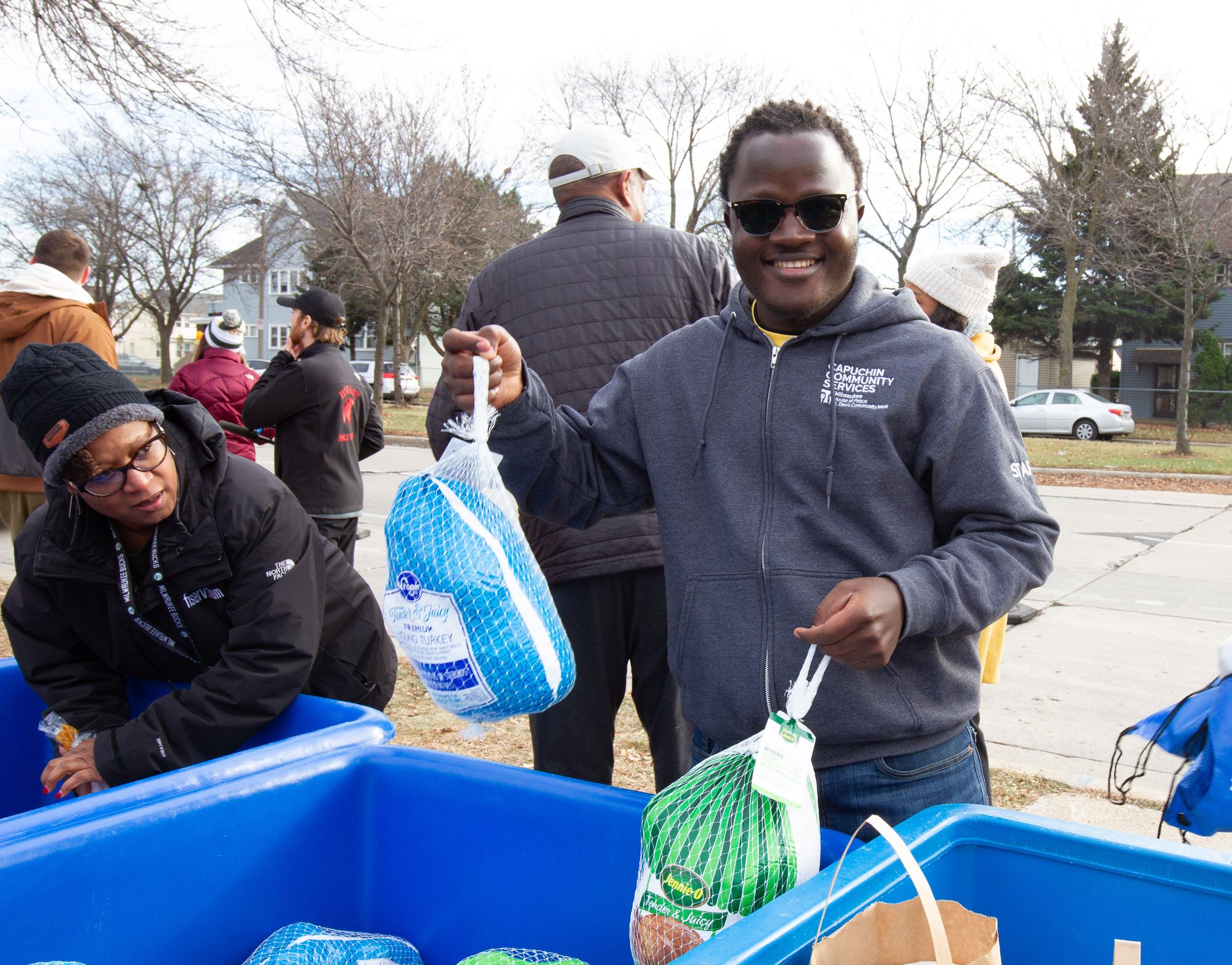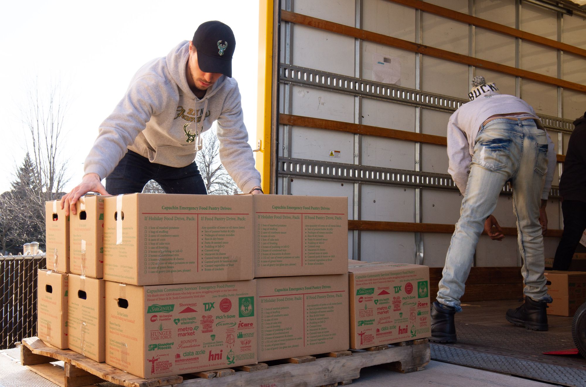 Every year, the outpouring of support for the ministry and the guests we serve is truly humbling. Annaully, more than 1,300 holiday food boxes are sent out to parishes in the Archdiocese of Milwaukee and neighboring dioceses. In addition, parishes, businesses, civic groups and families also fill boxes and send them back to the House of Peace, where they are distributed at Thanksgiving and Christmas. Sponsors from throughout Wisconsin, including foundations, corporations and the Archdiocese of Milwaukee, help make this program possible.